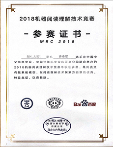 | 智慧城市国际会议优秀报告奖 | 2018年机器阅读理解技术竞赛参 赛 |
