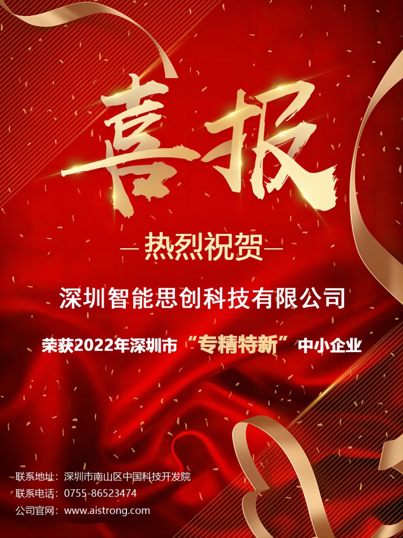 喜讯!智能必一运动bsport体育荣获“2022年深圳市专精特新中小企业”认定