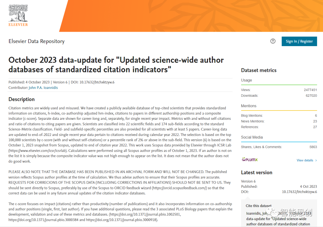 作为目前国际上权威的学术评价体系之一,该榜单分为两个类别,即“终身科学影响力排行榜”和“年度科学影响力排行榜”,分别对应1960-2022年及2022年度两个时间区间综合数据,并从全球近700万名科学家中遴选出世界排名前2%的科学家。其中入选者需要满足至少100次论文引用,且总被引次数排名在前2%的要求,以此体现其在各领域中具有的重要影响力。
