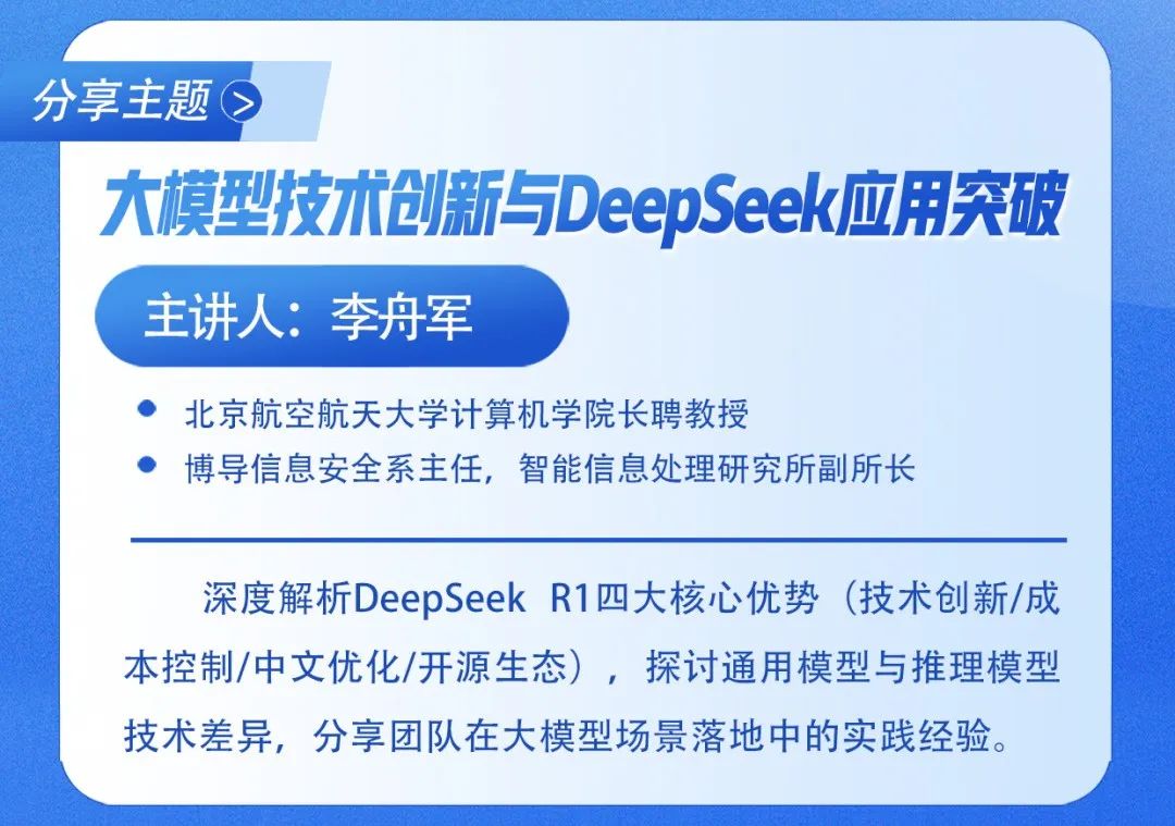 李舟军教授云分享:DeepSeek R1“有限算力+算法创新+工程优化”破局产业变革